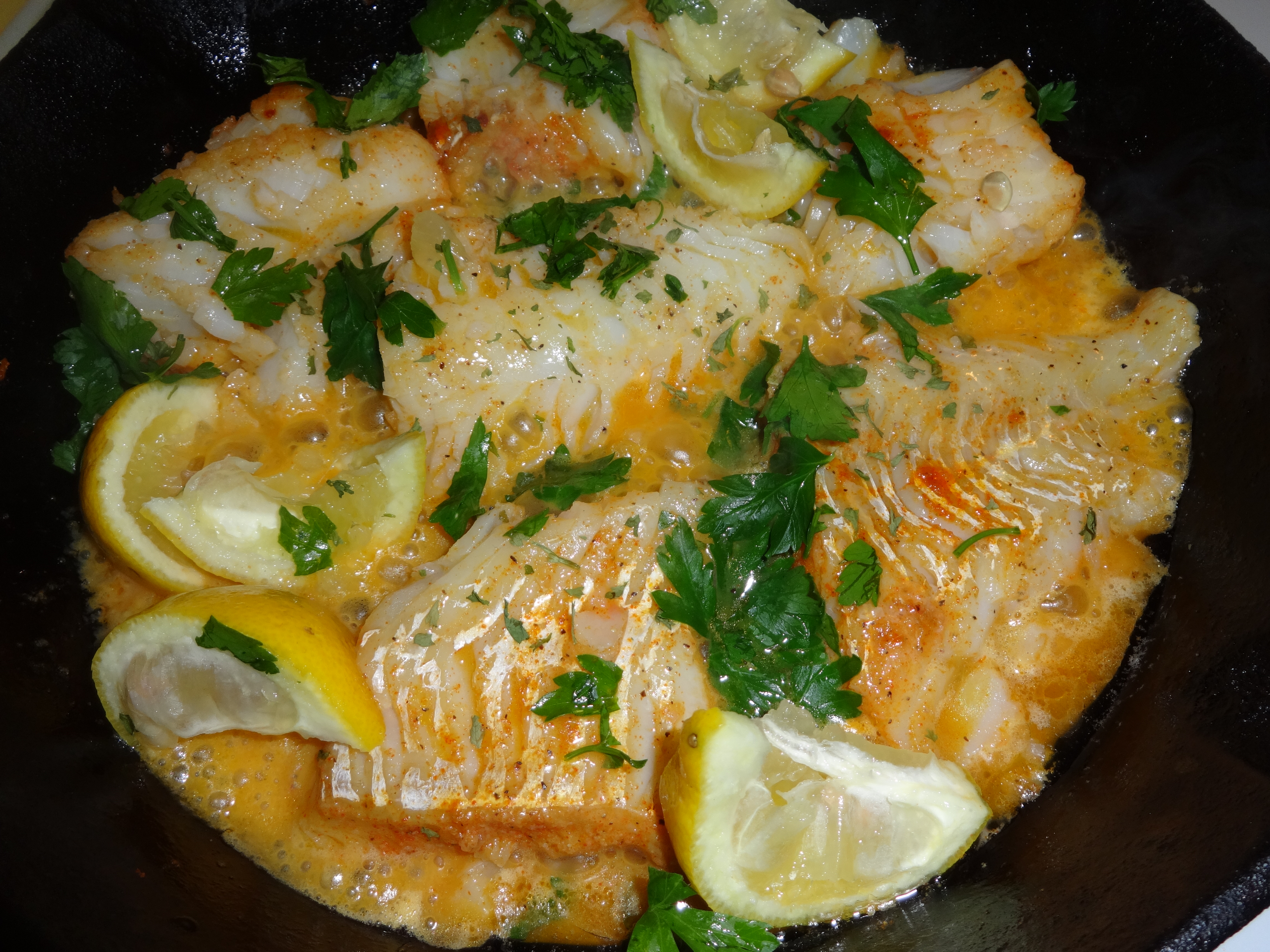 Buttered Cod Fish Over Egg Noodles